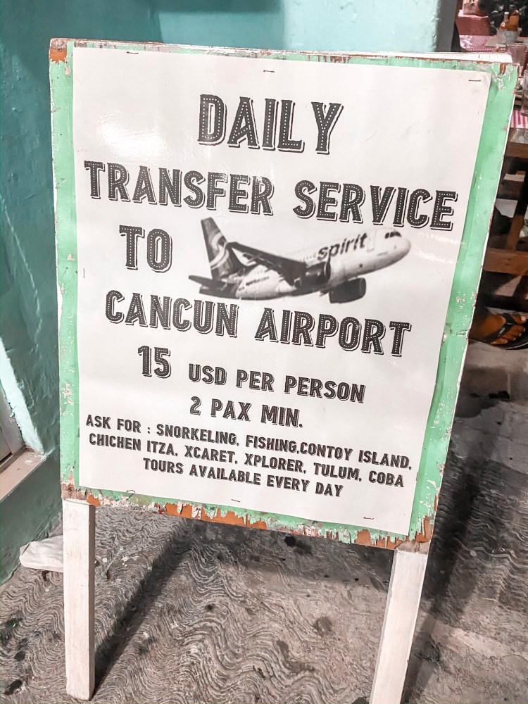 Fortunately at the island we stumbled across Adrian. Right across from the churros place there is a cafe called Cafe Internet Adrians. He has daily transfer service to Cancun Airport for $15 dollars. We bought the transfer from him and as soon as we landed at Puerto Juarez there was a taxi driver who knew our names and was waiting for us to take us straight to the airport where we were going to rent a car to drive down to Tulum.